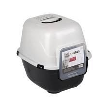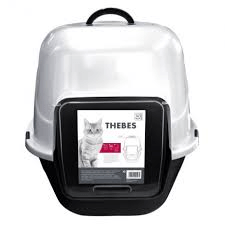 Maison de toilette Thebes – Permet de garder votre espace intérieur propre et sain surtout autour de la litiere – Dimensions : 62x53x58 cm – Coloris : noir et blanc – Pour chat.